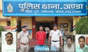 छत्तीसगढ़ के दुर्ग जिले के थाना अंडा पुलिस ने होली पर्व से पहले अवैध शराब के खिलाफ सघन अभियान चलाया। 1 मार्च 2026 को पुलिस ने मुखबिर सूचना के आधार पर ग्राम भ्रमण, पेट्रोलिंग और नाकाबंदी के दौरान चार अलग-अलग मामलों में कार्रवाई कर चार आरोपियों को गिरफ्तार किया। इनके कब्जे से कुल लगभग 22.92 बल्क लीटर (करीब 126 पौवा) अवैध देशी शराब जब्त की गई, जिसमें प्लेन और मसाला मदिरा शामिल है। अनुमानित बाजार मूल्य ₹10,000 से अधिक का है। साथ ही, एक स्कूटी (क्रमांक CG 04 LB 4381, कीमत ₹20,000) भी जब्त की गई।