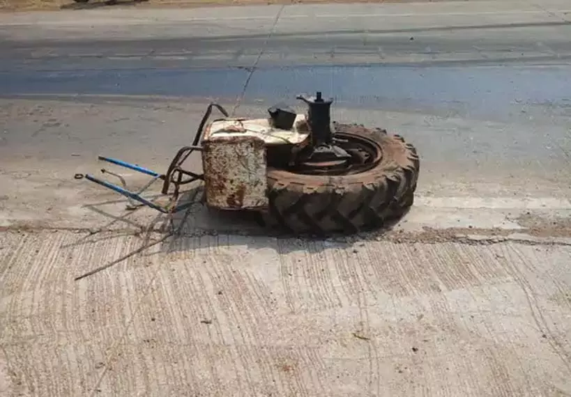 धमतरी NH-30 पर भीषण सड़क हादसा, ट्रक की टक्कर से ट्रैक्टर के उड़े पुर्जे
