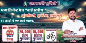 हर दिन के रोमांचक मुकाबले यू ट्यूब चैनल 108 लाइव पर लाइव प्रसारित होंगे, जिससे दूर बैठे दर्शक भी मैच का मजा ले सकेंगे। फाइनल में विजेता और उपविजेता टीमों को आकर्षक ट्रॉफी, पुरस्कार और सम्मान से नवाजा जाएगा।
