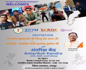 छत्तीसगढ़ : के शैक्षिक और वैज्ञानिक क्षेत्र में एक ऐतिहासिक पहल होने जा रही है। राज्य में पहली बार छत्तीसगढ़ अंतरिक्ष केंद्र की स्थापना के साथ अंतरिक्ष विज्ञान की नई शुरुआत होगी। जिला प्रशासन रायपुर और IDYM फाउंडेशन द्वारा, सारडा एनर्जी एंड मिनरल्स लिमिटेड के सहयोग से “प्रोजेक्ट अंतरिक्ष संगवारी” का शुभारंभ किया जा रहा है। इसके तहत नवा रायपुर में प्रदेश का पहला अत्याधुनिक अंतरिक्ष केंद्र स्थापित किया गया है, जिसका लोकार्पण 3 फरवरी को शासकीय उच्चतर माध्यमिक विद्यालय, राखी, नवा रायपुर में सुबह 10 बजे होगा।